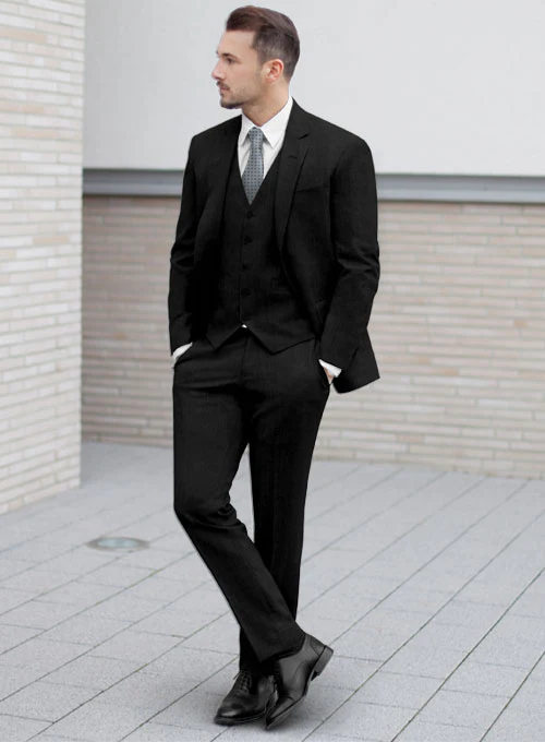 An essential addition to the wardrobe of every sophisticated man is this Black Wool Suit. Woven from wool cloth sourced from Italy, Reda fabrics stand out for their quality, luxury and are chosen by those who appreciate a good taste in fashion.Â
