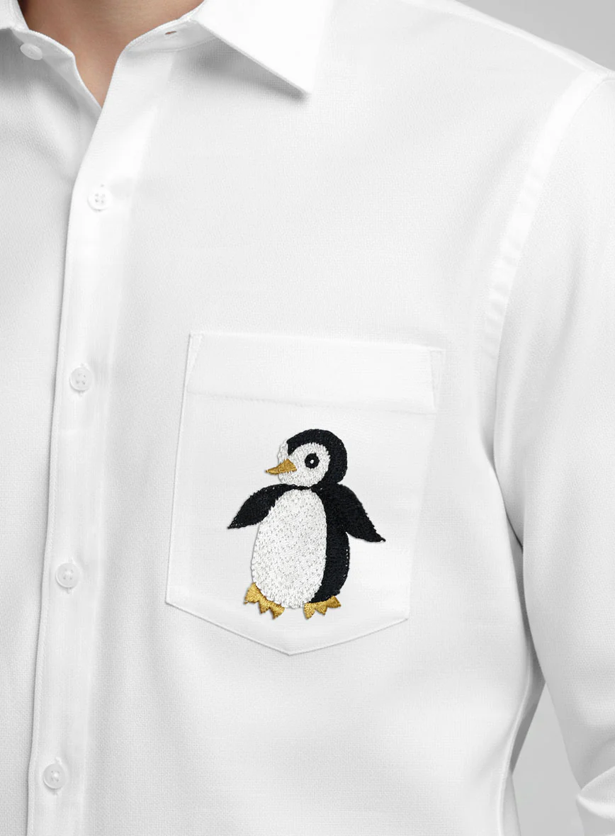 White Stretch Poplene Penguin Embroidered Shirt